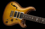 The result is a truly new PRS instrument that embodies the PRS Private Stock culture of meticulous workmanship as well as Mayer’s keen eye for playability, tone, and detail. Some of the more distinctive and personalized specifications Mayer and Smith decided on for this special run of instruments include a longer (for PRS) scale length of 25.375”, specially-wound 58/15 JM treble and bass pickups with a specially-wound Narrowfield JM pickup in the middle position (with three individual coil-tap mini-switches), a JCF Audio preamp with treble boost, as well as a hand-signed sticker in the f-hole of the guitar that was designed by Mayer’s friend David Smith (who also designed the cover art for Mayer’s 2012 Born and Raised album).